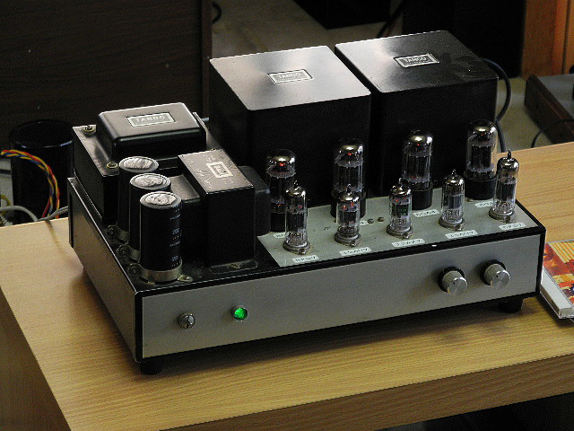 ![]() 9番目は中島さんのLUX MQ70 骨董屋から格安で購入し、ご自分でレストアされたアンプ。 UL接続で出力は余裕の40W、流石余裕の鳴りっぷりです。 カソード帰還も掛かっており、五極管と思えない柔らかい音。 |