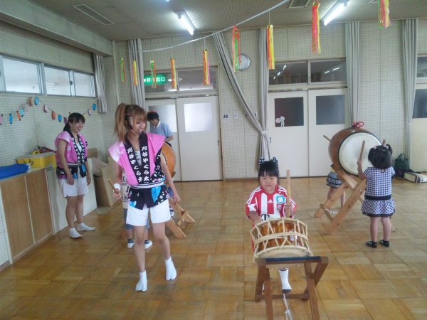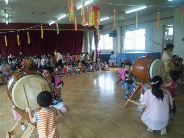 美希ちゃんの構成で子供達が知ってる曲を3曲、と他に2曲子供達にも太鼓体験をしてもらったりと喜んでもらえました。