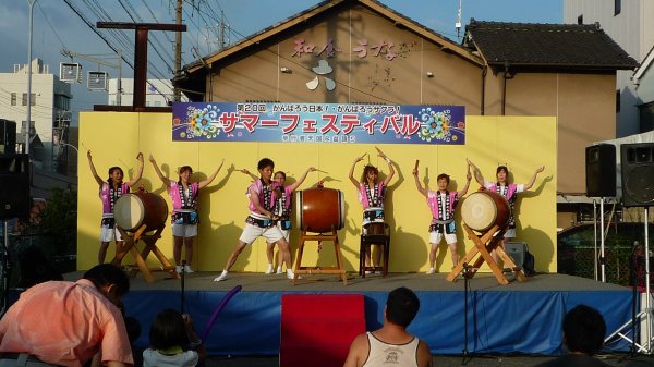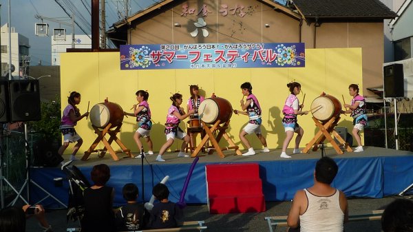 恒例の地元桜町通り”サマーフェスティバル”にステージ30分盆踊りと二本立てで参加