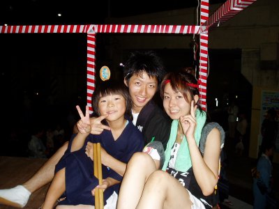 地元桜町商店街・青年部・婦人会・市民館等合同のイベントになって3回目? 今年も盆踊りのやぐら上で頑張ってきました。 ←やぐらの上で左から和貴・榊原・本澤 |