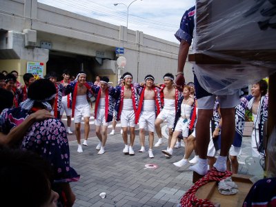 昼間の桜町”グリンモール”での待機中に大きな輪になって舞いで盛り上がってるグループです。 ここにも法被を肌蹴て踊ってる前田がいます。 * へ続く?? ←陸橋の下です。 |