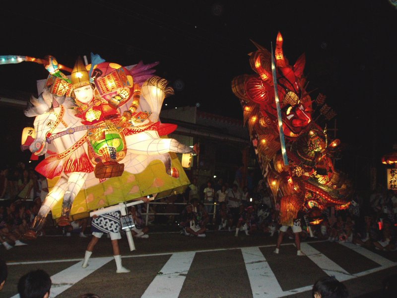 左の中万燈はデンソーさんが一から作った新作です、見事な万燈です、重量48kg