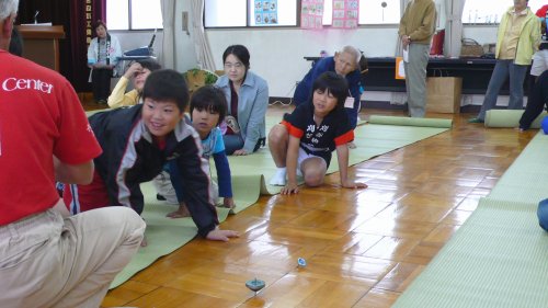 今回で2回目の元刈谷市民館でのイベントのお手伝いです。 舞台が狭い為に苦しい演奏になってしまいますが何とか終了しました、和貴の初舞台でしたが落ち着いて演奏していました。 ←イベントの駒回しに熱中の和貴です。 |