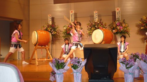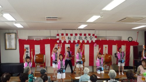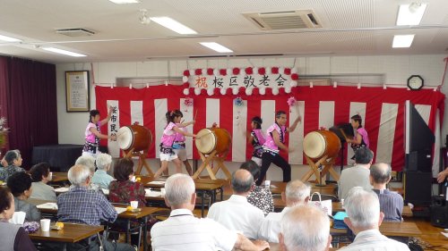 毎年恒例の敬老会、来賓の挨拶が終わり 第二部の”演芸会”のトップで何時も演奏させていただいています。今年は特に大勢のお客さんが真剣に見てくださいました、そして”良かったよ!”って喜んでくださいました、本澤の提案で初めて一生懸命皆に教えて本番では一番前の真中で踊ってくれ頑張ったかいがあったんでは。
