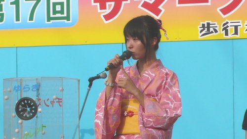 本澤は16時から21時まで司会・太鼓演奏と大忙しです。自作の浴衣で頑張りました。 太鼓演奏時は”たすきがけ”です。 |