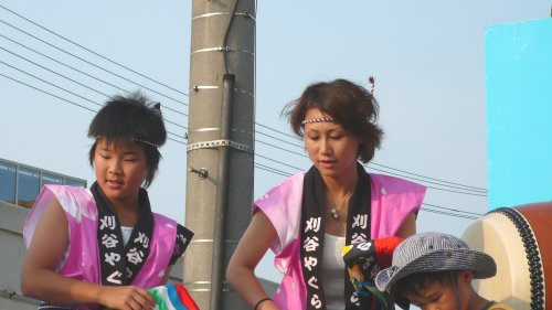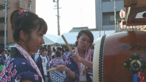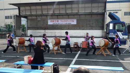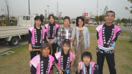 地元の企業”JTEKT”さんのフェステバルのオ−プニングを努めて来ました。 ←”きよし”を演奏しています。初舞台のメンバーが2人います。 |