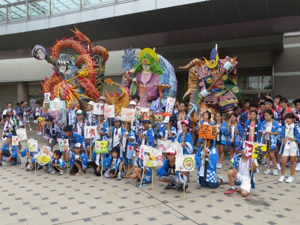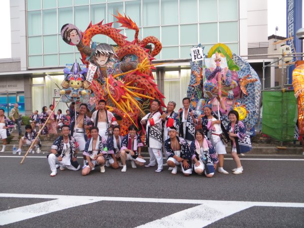 | 揃ってパチリ 真ん中の白法被は頭の水野さん |