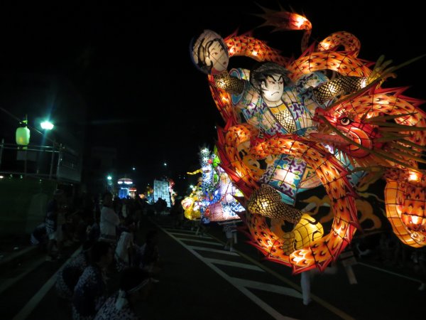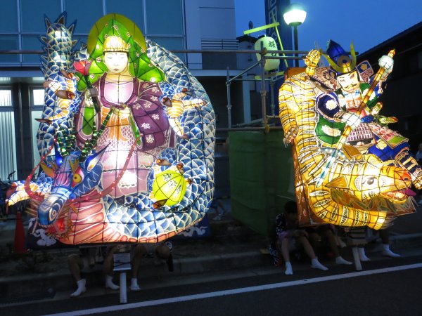 披露舞の大万燈と中万燈 右の小万燈は新作です |