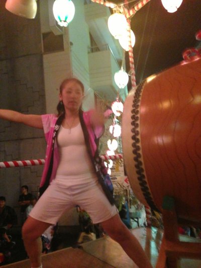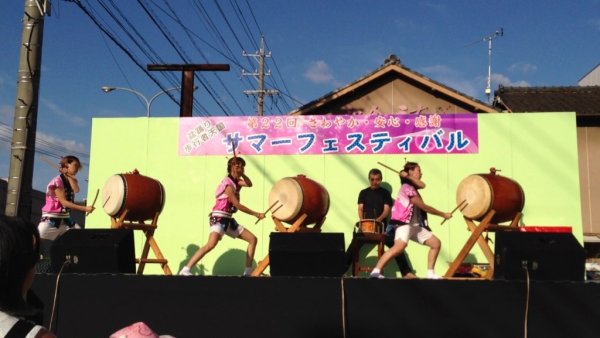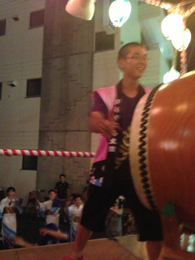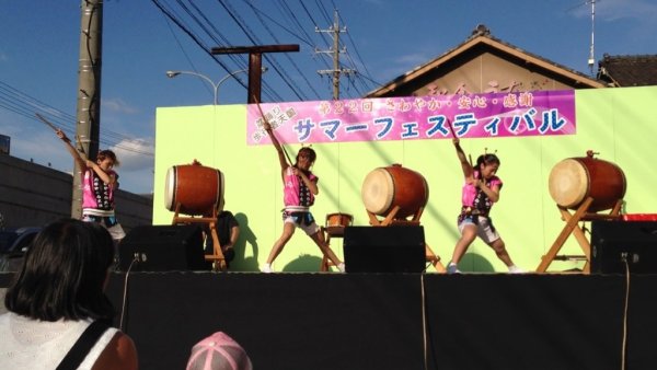 今年も私達はステージで30分の太鼓演奏毎年強烈な西日に真正面から浴びせられての汗だくの演奏です(笑)