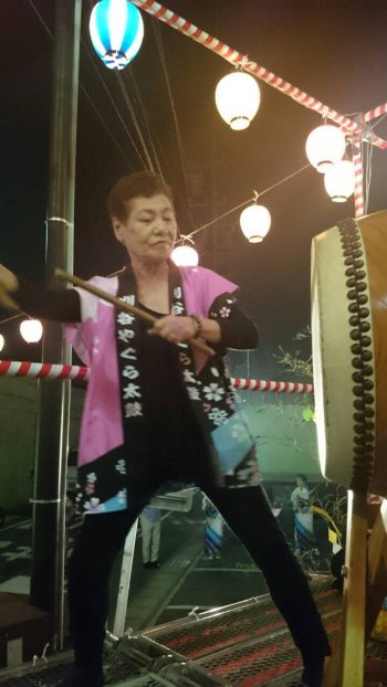 恒例の夏祭り今年も参加しました、今日がこの夏最高の暑さとの報道14時45分からのステージ演奏ですが、誰も集まってこないMCも初めての新人それにしても何時からステージで演奏が始まります、まもなく始まります何て放送一度もしない、こちらが請求して初めて2分前に放送、ステージ前には椅子が焼けて熱くて座れなくなるから出して無い、でも時間になったから始めました、万燈に参加して太鼓をたたいてくれた中学生の女の子と同じく久しぶりに参加した女性、道路の向こうの日陰で浴衣の若い女性が2人曲に合わせて踊ってくれています、後は警備の人 地元の人数人が写真を撮ってくれています、近所の店の人も覗いてくれました、そんな状態ですが私は焼けたステージの床で足の裏がジリジリ一曲何とか我慢して終わればたまらずに足袋を脱いでスリッパに履き替えました(笑)私達の後の子供たちの 金管・バトン・吹奏楽・・・暑さで2人救急車で運ばれたようです、夜の盆踊り時になっても気温はそんなに下がらずに皆さん大変だったと思いますが、沢山の出店が出てお客さんも毎年増えてて盛大に成っています、来年からはステージにテントを付けるとか大型の扇風機?とか、何か考えたほうがいいと思いますね。