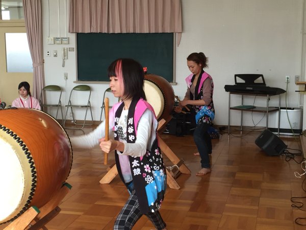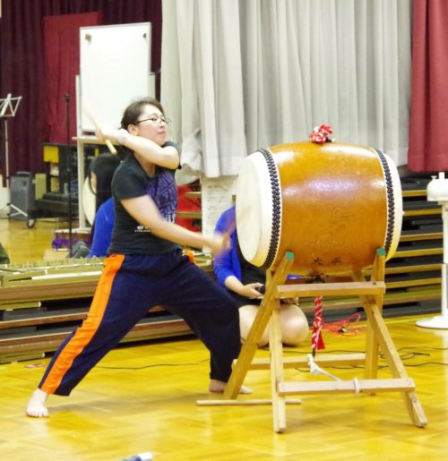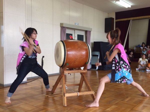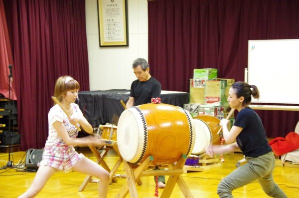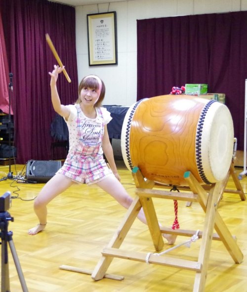 | 組太鼓を演奏する ミキ ヒイナ | 組太鼓の自由打ちに入る ヒイナ |