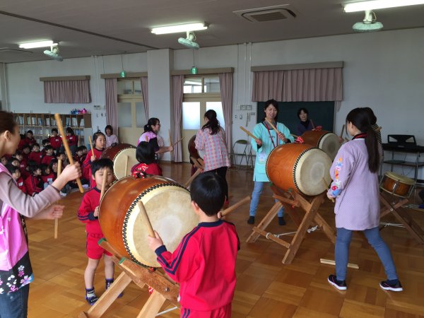 刈谷幼稚園さんからは何度も声をかけていただき恒例になりつつですかね(笑)今回は5人で行って来ました、演奏は30分何時ものようにリーダーが子供用に構成した曲で園児達は元気に歌ってくれたり踊ってくれたり、最後は年長さん60数名が太鼓体験、園児達と一緒に楽しんできました。