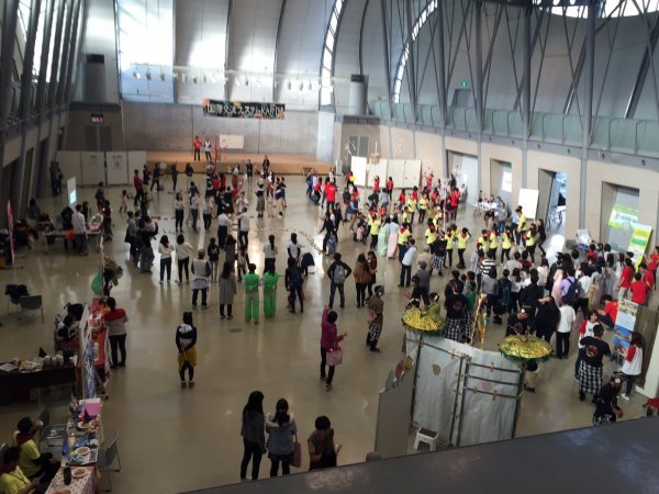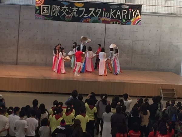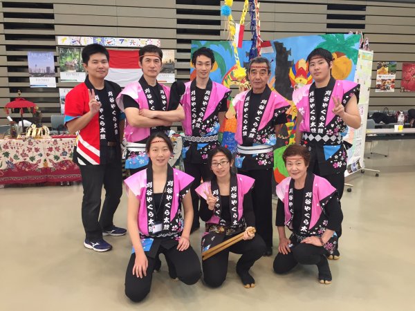 メンバーのカエが参加している刈谷市のイベントグループからの要請で演奏してきました、留学して来てる若者の交流が目的のようで各国対抗でいろんなゲームをしたり お国のパフォーマンスを披露したり各国がブースを出したりと盛大で皆さん楽しんでいました、私たちは各国のパフォーマンスの最後に6分だけでしたがリーダーがオリジナルの”流水”を時間に合わせてアレンジした曲を7人で演奏しました、今月入会の新人には演奏の雰囲気を見てもらい写真撮影をお願いしました、演奏は新人が主でしたが何とか上手く出来各国のパフォーマンスの時より大勢が見てくれて実行委員長からも好評でしたと言ってもらえました。