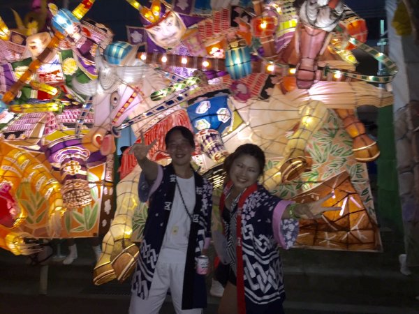 今回で14年目 万燈まつりに参加した来ました、流石の夏祭り 昼過ぎからの”町曳き”夕方からの”新楽”とんでもない暑さの中 歩数系は25000歩でした(笑)今年から運営方が変わり 周りが色々協力体制が整って、昨年までの口だけ出して手伝わない連中もいなくて練習、本番とスムーズに進行して大いに楽しむ事が出来ました、メンバーの新人2人も楽しんでくれたようです。