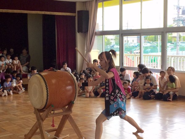 刈谷の重原幼稚園のお誕生日会に行ってきました、園児達の知ってる曲を中心に一緒に歌ってもらったり 踊ってもらったり、最後の太鼓体験は25人と人数が少なかったので2曲体験してもらいました、私達も一緒に楽しませてもらいました。