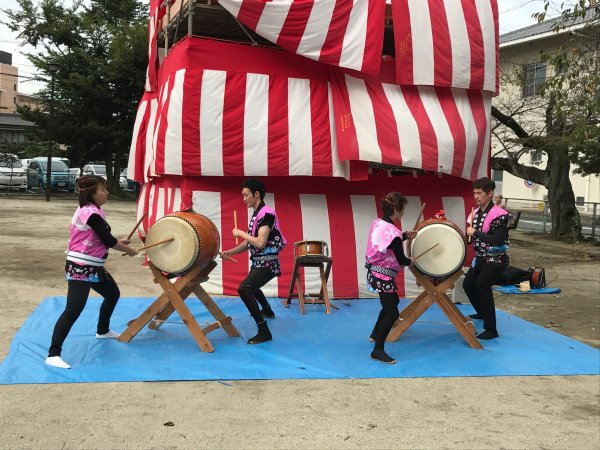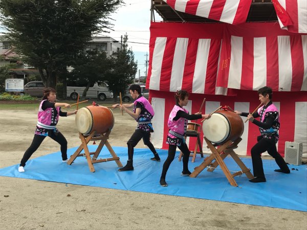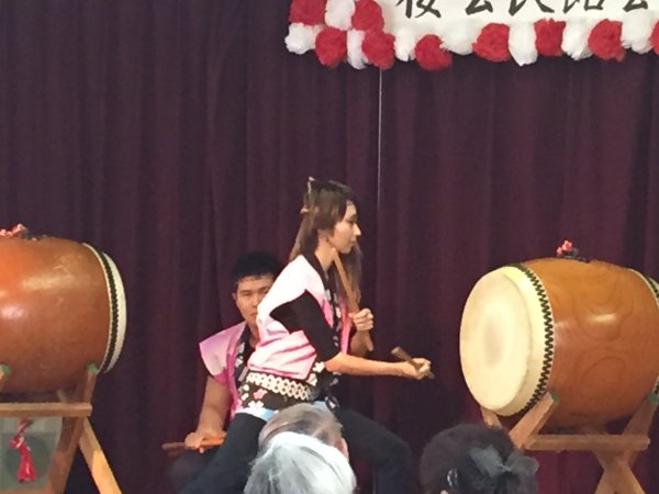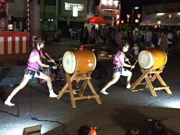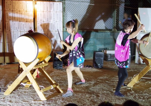 | 組太鼓新バージョンを演奏、マリとミキ |