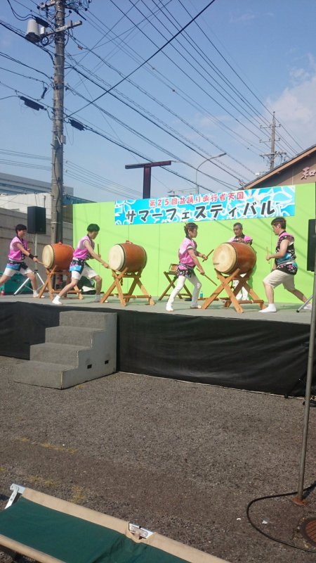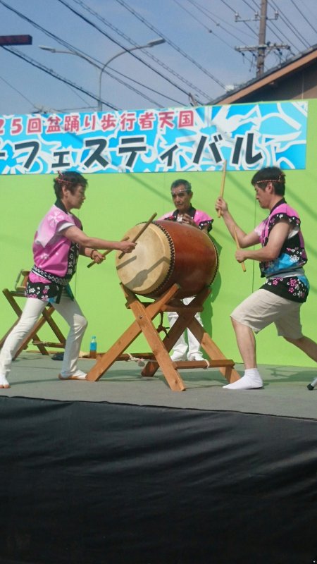 | 舞台が狭く太鼓3ツがいっぱいです |