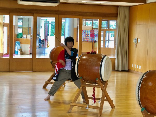 | 和貴のお母さん制作の”幕”映えますね | 太鼓体験始まりました |