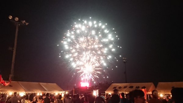 | リーダーからのオファーで遠征です、昨年から二回目?最近ピンポイントでの雷雨が多いので 恵那の山が心配して雨雲を携帯で見てたら直ぐ北側の二ッ森山辺りに雨雲が・・帰った メンバーに聞いたら大丈夫だったようです、写真では凄い人出で花火までも、こんな 盆踊り行ってみたいですね。 |