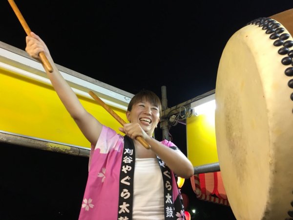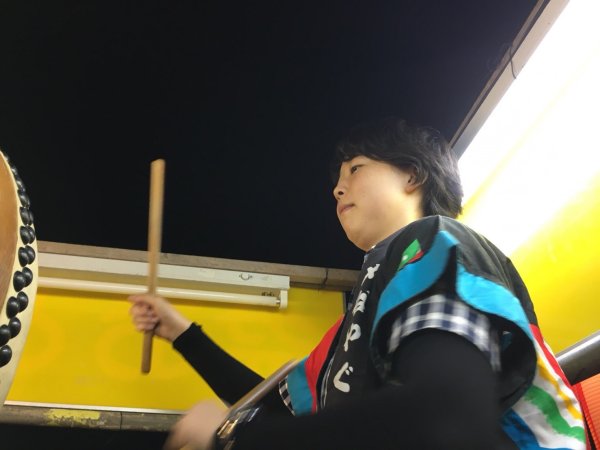 | チョツト小ぶりになったやぐら上で マツオ | 長年やってるから神谷さんの盆太鼓凄い |