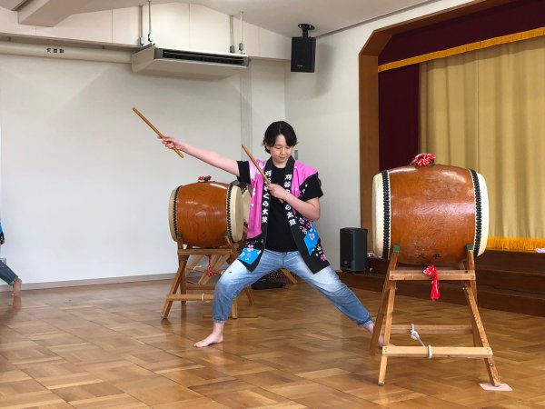 | ユウキチ演奏中 | 年長さんの太鼓体験 |