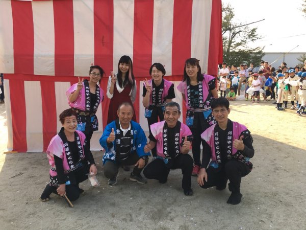 | 恒例の地元の秋祭りの餅投げ前の演奏をしました、昨年から演奏時間の見直し等してチームの紹介をしてもらい時間も 餅投げ時間前、餅拾い参加者者が集まってからになり 大勢に見てもらえるようになり、今年はリーダーの司会も入って 楽しく演奏出来ました。 |