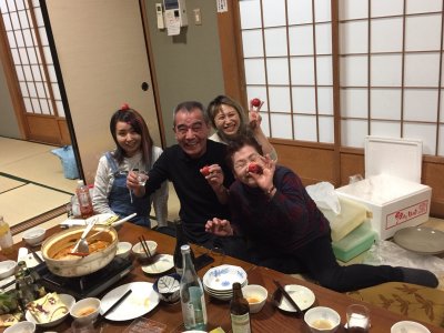 | 今年は9人の参加でした、今年も鍋”キムチ鍋”と”寄せ鍋”具材はどちらも 同じ何でも適当にぶち込む(笑)飲み物は各自好きなものを持ち寄る、毎年 何か作ってきてくれる松尾さん 今回はしっかり漬け込んだ”カラアゲ”皆 うまいうまいと直ぐに売り切れ(笑)いつもありがとうございます。 |