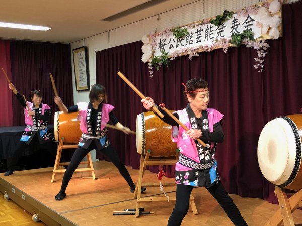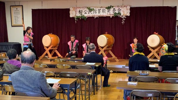 | 恒例の桜市民館使用グループによる発表会のオープニングで演奏してきました 急遽4人になりましたが。即対応(笑) 市民館関係者地区の役員皆さんで回覧等 色々宣伝してもらっていますがなかなか一般の方は見学に来てくれませんね 私達は3曲楽しませてもらいました、お馴染みの皆さん今年もよろしくお願いします。 |