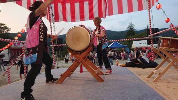 | 岐阜の山の中 笑花火まで上がる盛大な盆踊り、マツキ・マリ・ヒイナの三人で頑張ってきました。