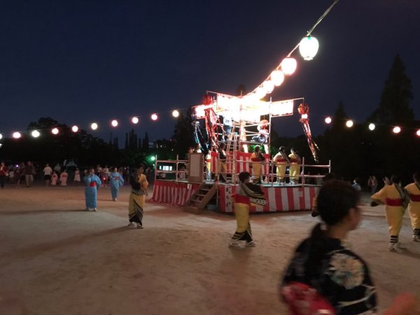 | 毎年呼んでいただいている 原崎地区の盆踊り二日間です、殆ど毎年2〜3ヶ所 かぶってたいへんですが 笑 今回も地元桜区と今川の盆踊りの練習日とダブり ました、広い公園での開催で何か人もまばらに見えますが休憩時間のやぐら太鼓の 演奏時にはこんなに大勢いたんだろうかって位集まってくれました、また来年も 呼んでくださいね。 |