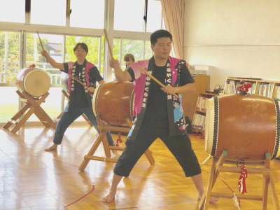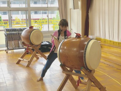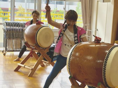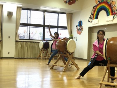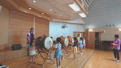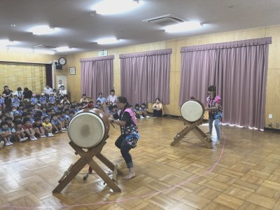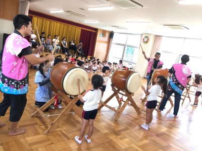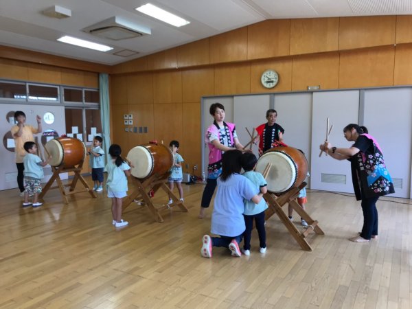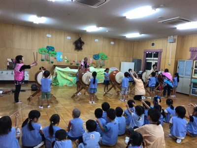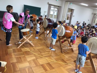 | マリ・ミキの組太鼓 | 太鼓体験 年長さんが頑張ってます |