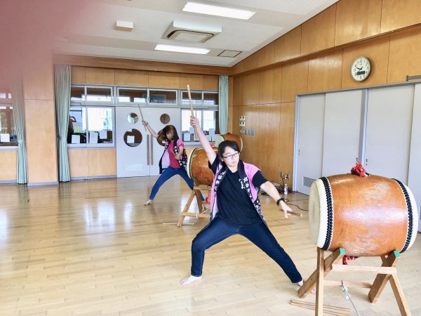 | 組太鼓 ミキ・マリ 綺麗に決まりました | 曲打ち ミキ 楽しそう |