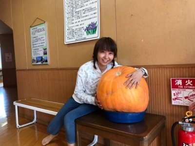 | デカーいカボチャ つい1枚 | 太鼓体験ステージで始まりました |