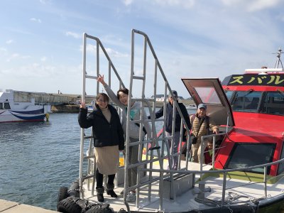 | 先ずは お馴染みの集合写真 | タクシースバルで西港に到着です |