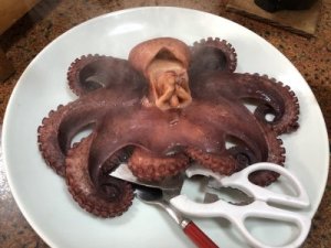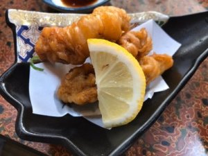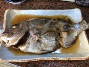 | 煮魚 身がはじけてますね | トラフグのから揚げ、鯖河豚じゃないよ | デカいタコ |