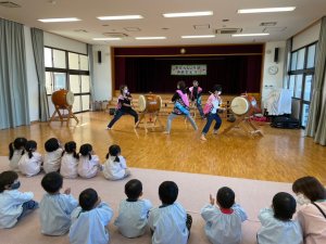 | 今年初の演奏依頼です、4人で行ってきましたコロナ過のなか幼稚園も 大変ですね、園児達も大声で騒がないように言われているのでしょうか? 園内も静かです、演奏も20人程の園児が遊戯室に静かに入ってきて 広がって座って声も出ません、演奏が始まったら一生懸命聞いてくれました そして年長さんの太鼓体験は頑張って太鼓を叩いてくれました、早くコロナ 過も終息してドラエモンとかパプリカを一緒に踊れるようになると良いですね、 こんな情勢のなか声をかけていただきありがとうございました。 又是非声をかけてください、宜しくお願いします! |