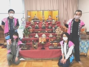 | 年長さんの太鼓体験 | 大きなひな壇の前でパチリ |