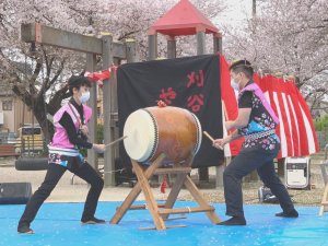 | 地元刈谷桜地区の春祭り”スプリングフェスタやっと開催されました 本当に久しぶりの演奏参加です、天気は薄曇り桜は散り始め風が 吹くと桜の花びらがワァ〜と散る気持の良い中での演奏を楽しませて いただきました、開催に向けて頑張って頂いた役員、市民館関係者 敬老関係、婦人部、子供会関係、氏子関係、その他お手伝い頂いた 皆さんありがとうございました、やぐらの関係者ありがとうございました 何とか今後も各種イベント開催できると良いですね!! |