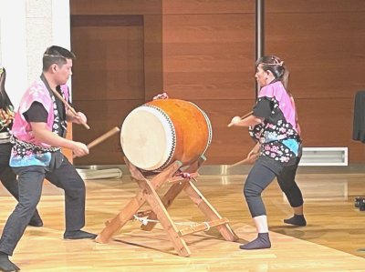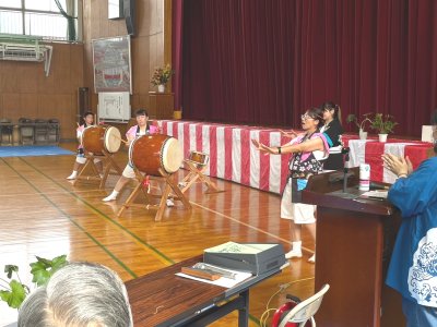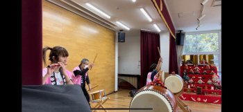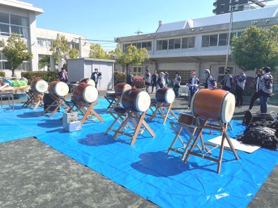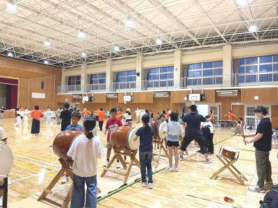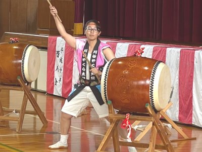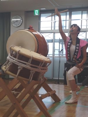 | 地元の子供会が数年前に解散すると同じくしてコロナと 被って刈谷の”万燈祭”に参加する子供がいなくなって 参加者等を増やし祭りの広報も含めての一環として 前回デンソー桜Gの万燈蔵へ小高原小学校3年生が見学に 来てくれました、今回は学校へ万燈の出前をしましょうと(笑) 万燈担ぎG・太鼓G・笛Gと3年生85名4年生102名を二回 3グループに分けて体験してもらおうと・・・太鼓部門は私に との事でやぐら太鼓メンバー ミキ・マツキ・ヒイナ・ユリの 計5人でお手伝いしてきました、せっかくだから本物の太鼓に ふれてもらおうとリーダーミキが頑張ってくれて9セット分を 用意して、万燈メイン曲”ちゃらぽこ”をミキの指導で体験して もらいました、1人ずつは少ない時間でしたが交代時に子供が ”めちゃ楽しい”と言ってくれたり今回頑張ってくれたデンソー からも喜んでもらえた様で良い機会だったしけ経験をさせて もらいました、デンソーからはこれから毎年やる予定との話 ですから楽しみがまた1つ増えました、参加メンバーお疲れ様でした。 |