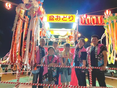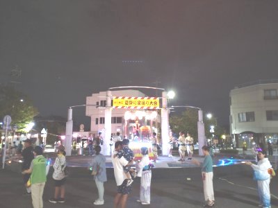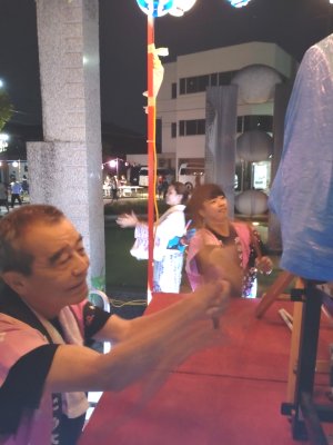 | 4年?ぶりに地元桜地区の盆踊りです、 今年から全て今までと違う開催になり桜市民館 隣の神明公園で15時から色んな出店、18時から ビンゴ大会、19時から盆踊りで桜町通りでやってた 時にはあったステージでの催しは無くなりました、 ビンゴ大会のせいなのか凄い人出でごった返して いました、高津波の盆踊りと被った為、以前の様に 神谷さんに手伝ってもらいユリ・けい君の3人で 頑張ってもらいました。 |