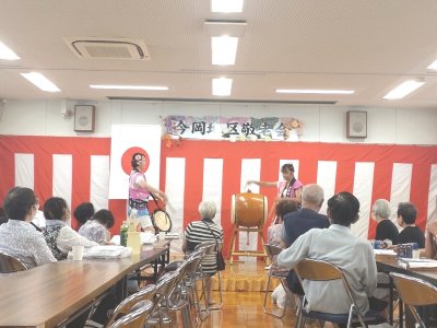 | こちらは今年初めて盆踊りに呼んでいただいてその流れで 敬老会にもと、急いで少し離れた今岡公民館で三人で 演奏演奏中に観客から合いの手も頂いて楽しく演奏でき たようです、又機会がありましたら声をかけてくださいね! |
