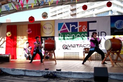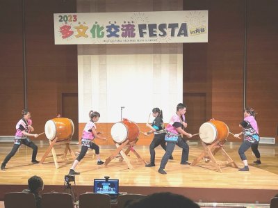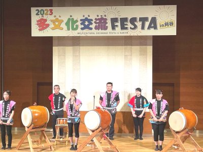 | 本当に久しぶりに復活、今回から刈谷市が主催で再開です 一階から三階まで各国の色んなブース四階ホールの ステージでのオープニング演奏でリーダーミキが組太鼓と ユウキチを編曲して流水も追っ掛けを入れて・・やっぱり ステージでの演奏は気合が入って楽しいですね、キッチリと 演奏できて良かった!! |