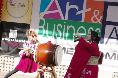 | 演歌に合わせて、みき・マルセラのコラボ | 演奏終了、さあ次はコラボ |
