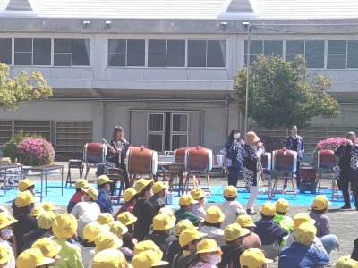 | 年長さんの太鼓体験 | みき・かえの担ぎ桶太鼓 |