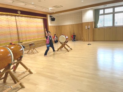 | ミキ何か嬉しそう? | 年長さんの太鼓体験 楽しそう |