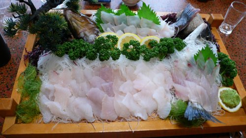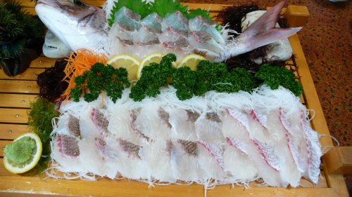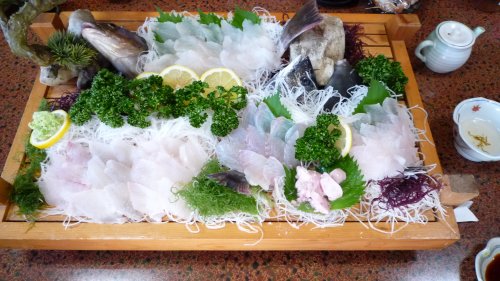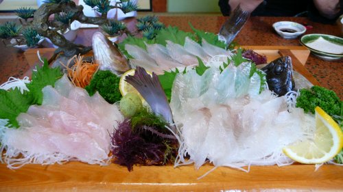 無線局のメンバーとは今年初めての日間賀島行きです。 アイナメとカレイのお造りです。 |