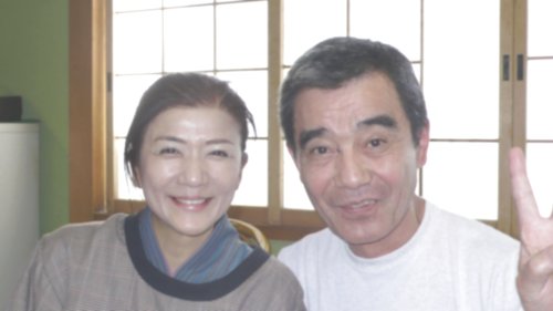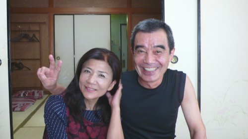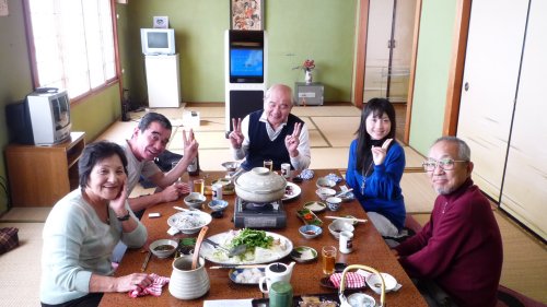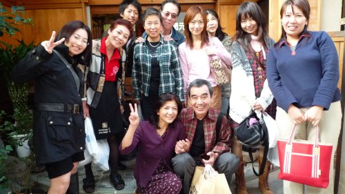 帰りに中平さん前にて集合写真、前に女将さんと2人並んで座り嬉しそうなのが私です(