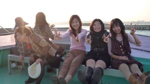 帰りの海上タクシー”スバル”も当然デッキです。 右から 本澤・前田・槌田・左を向いてる酔っ払い(ゴメンナサイ)松尾。 |