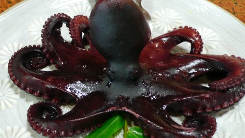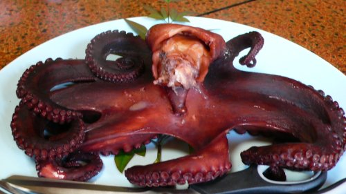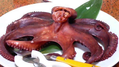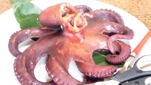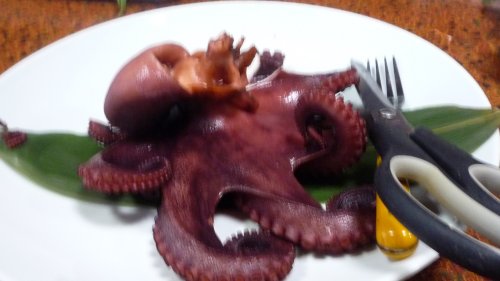 パックツァーのお客さん50名が入って凄く忙しそうでした・・・・ツァー客も次に行く所があるのか食べるのが忙しそうでした?? 定番の”茹で蛸” 5人前ですので大きな蛸です。 |