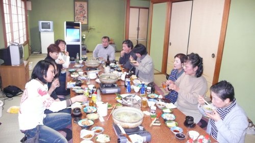 ボツボツお腹も膨らんで話しに花が咲くメンバーです。 この後大カラオケ大会が始まってしまいました。 女将さん何時もサービスでゴメンナサイ! |